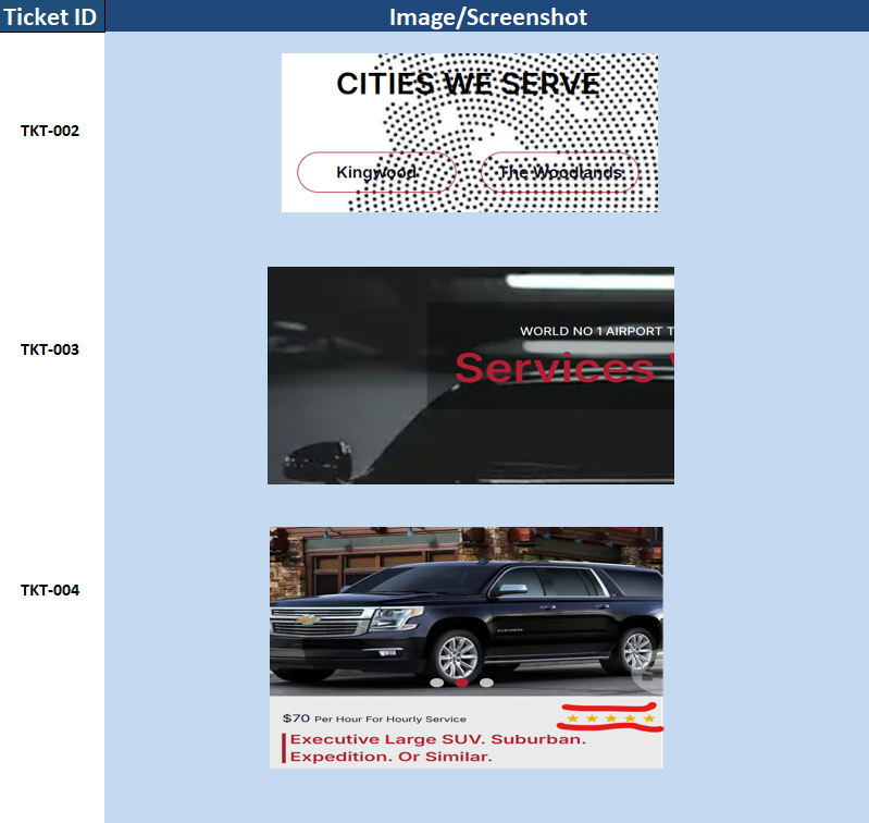 - Unoptimized Background Images: Important sections like “Cities We Serve” had unreadable content due to poor background contrast.